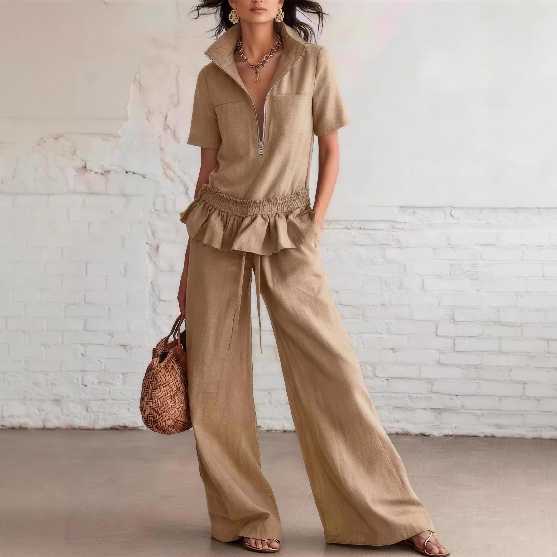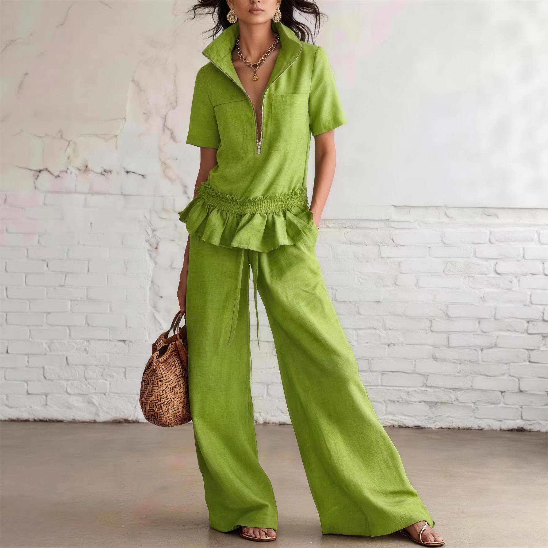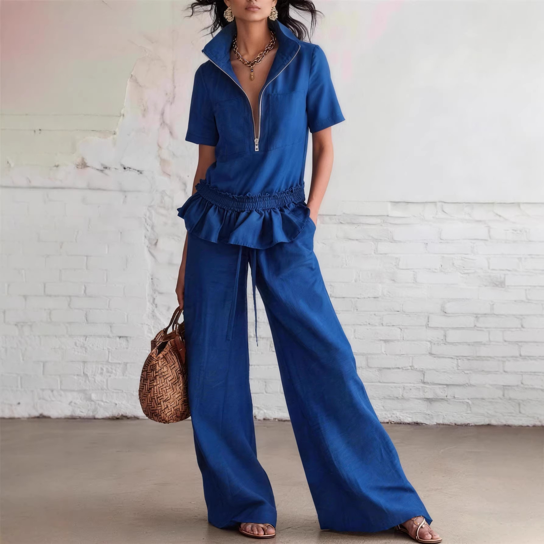 Solid-color Womens Wide-leg Trousers And Shirt Set